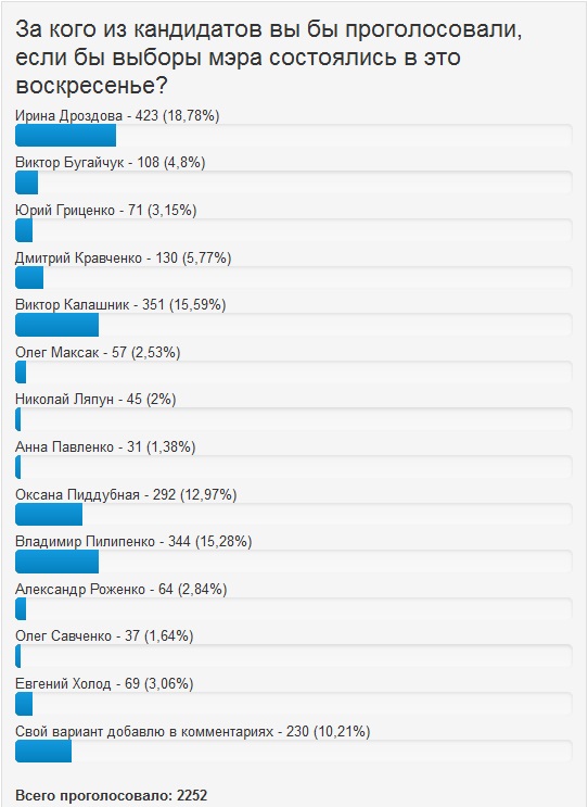 «ТелеграфЪ» интересует мнение наших читателей. Мы предлагаем пользователям сайта ответить на вопрос: «Кого вы видите мэром Кременчуга?». Перечень фигурантов опросного листа составлен, исходя из их публичной политической активности и инсайдерской информации.