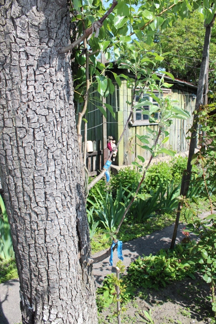 Показав нам хазяїн і одну з перших своїх прищеп – яблуню на груші. Їй уже 25 років, але вона і досі жива. До речі, на тому дереві близько 26 прищеп!