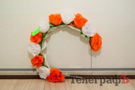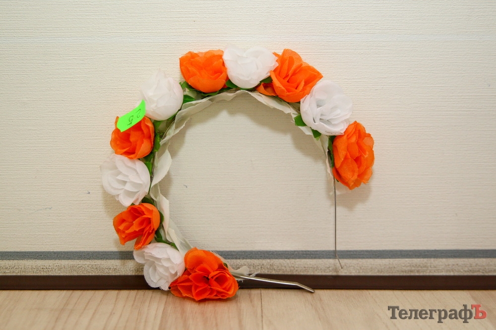 Обруч с белыми и оранжевыми цветами