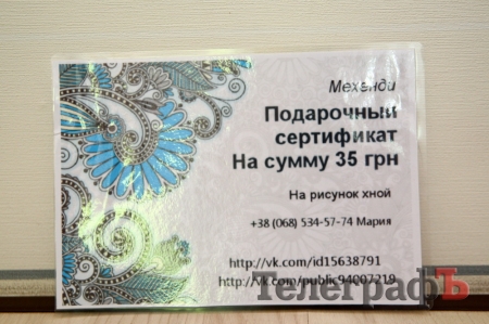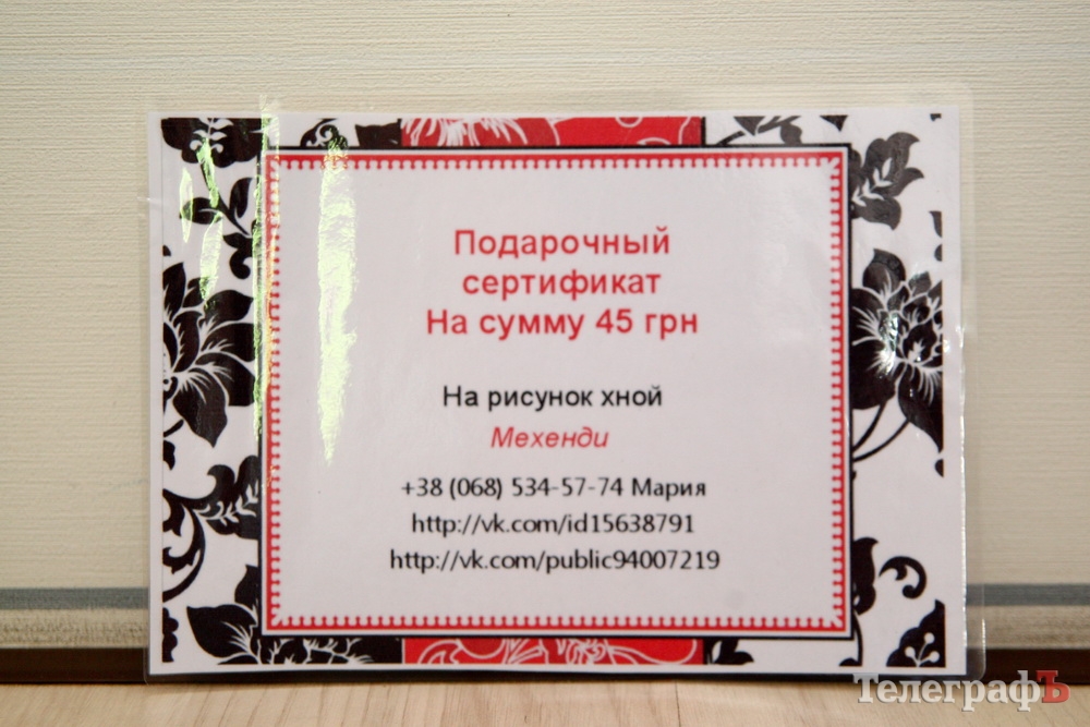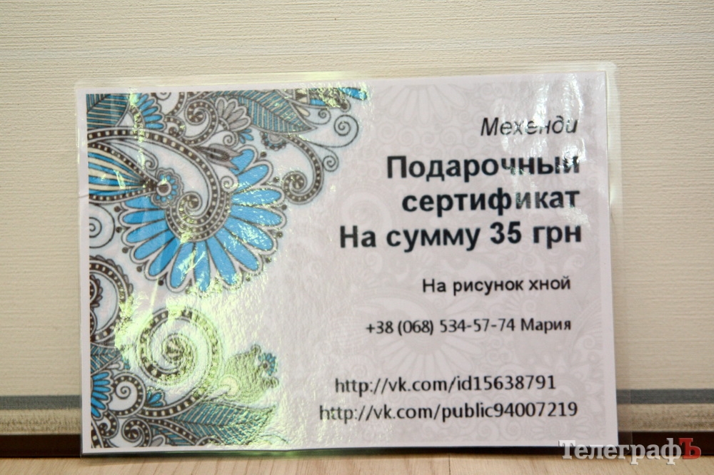 Подарочный сертификат на рисунок хной «Мехенди»