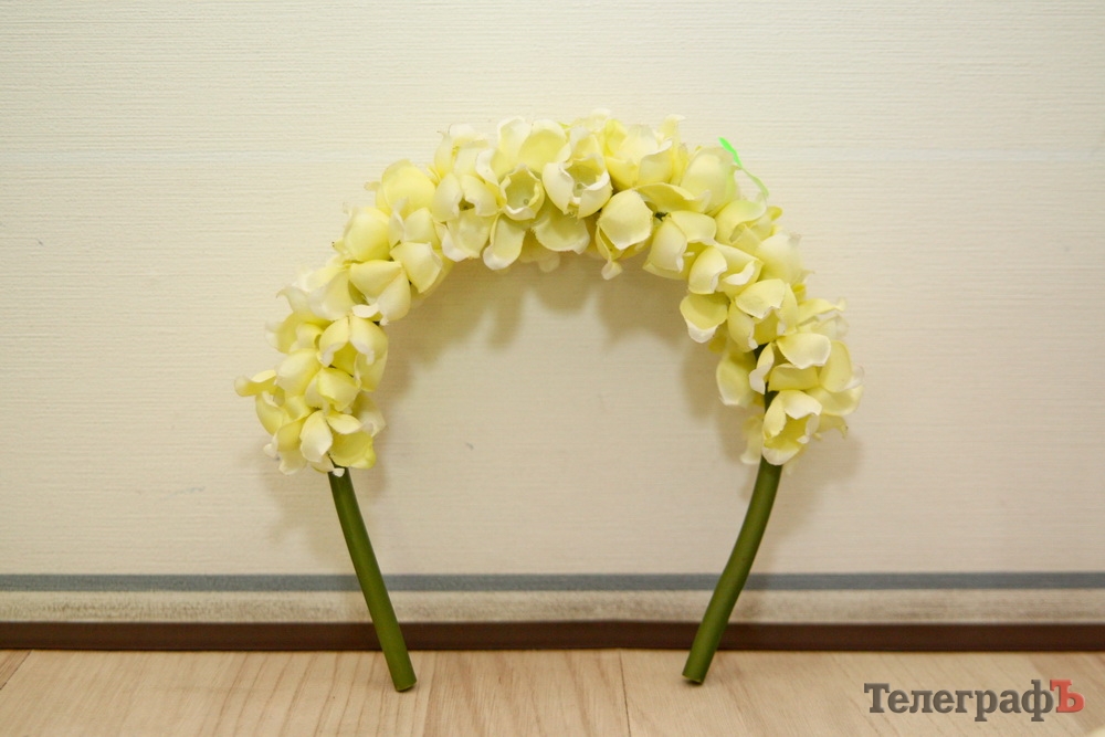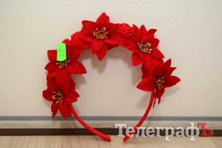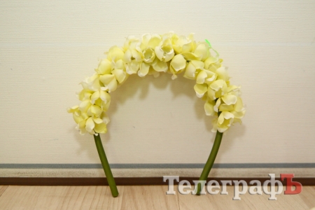 Обруч с объемными красивыми цветами.