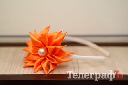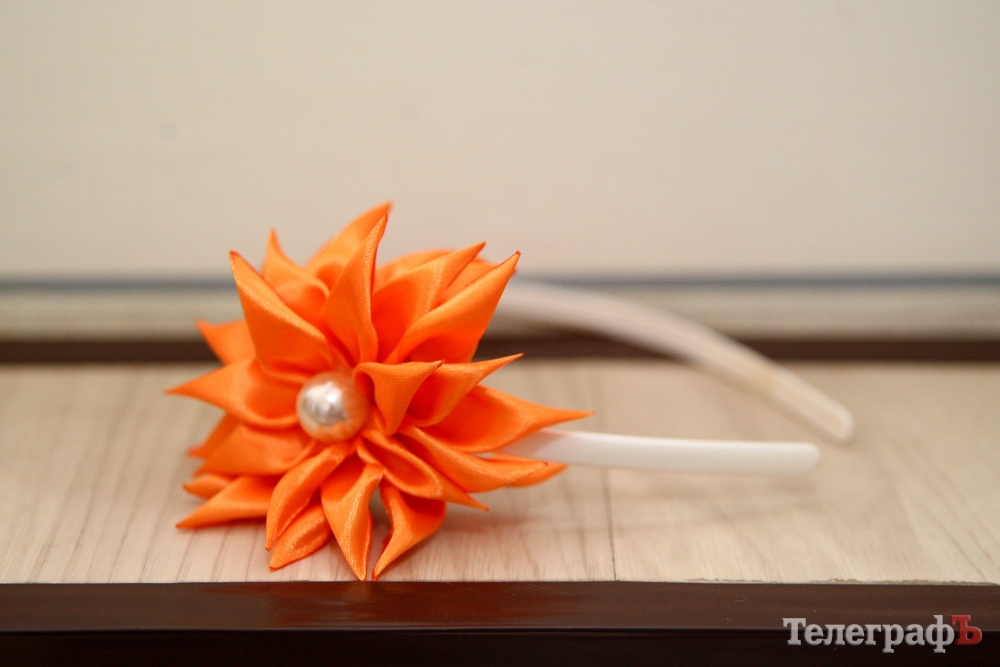 Обруч «Оранжевый цветок». Белый обруч украшен оранжевым цветком из атласной ленты.