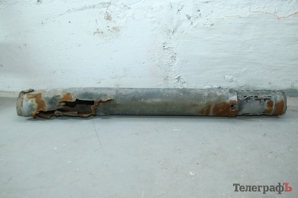 Ракета от БМ-21 «Град», прилетевшая на наши позиции в Счастье. Слава Богу, никто из наших ребят не пострадал.