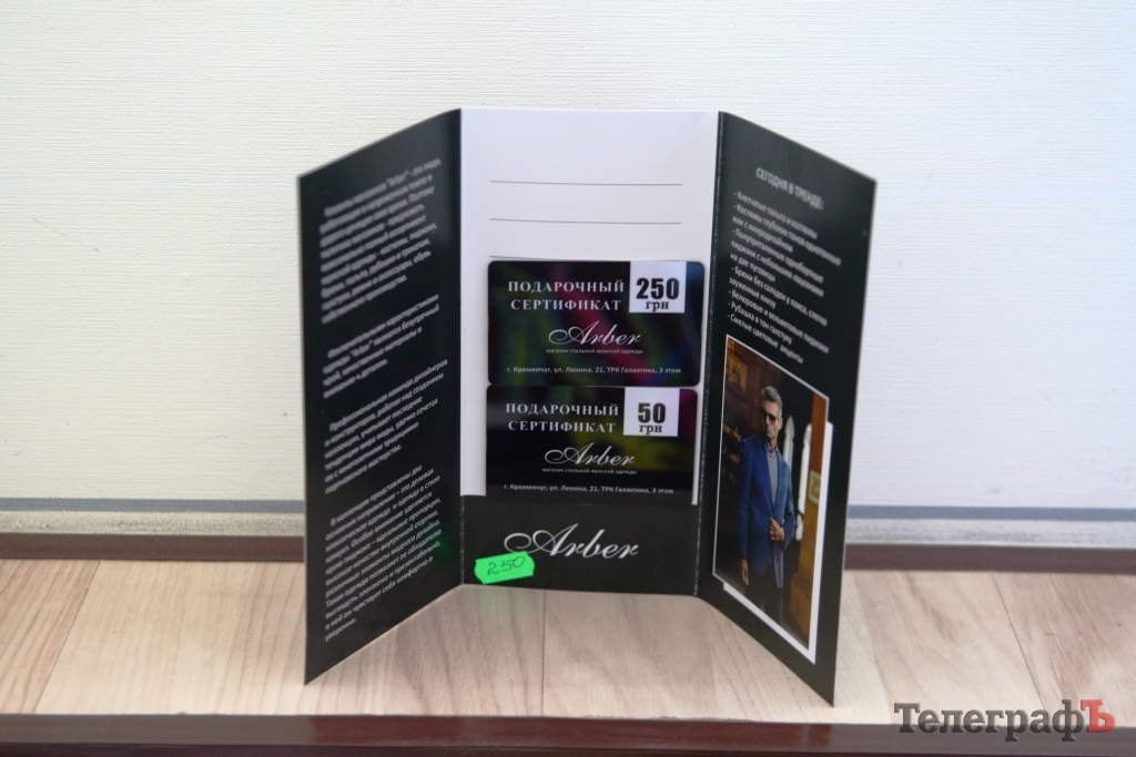 Сертификат от магазина "Арбер" на сумму 300грн.