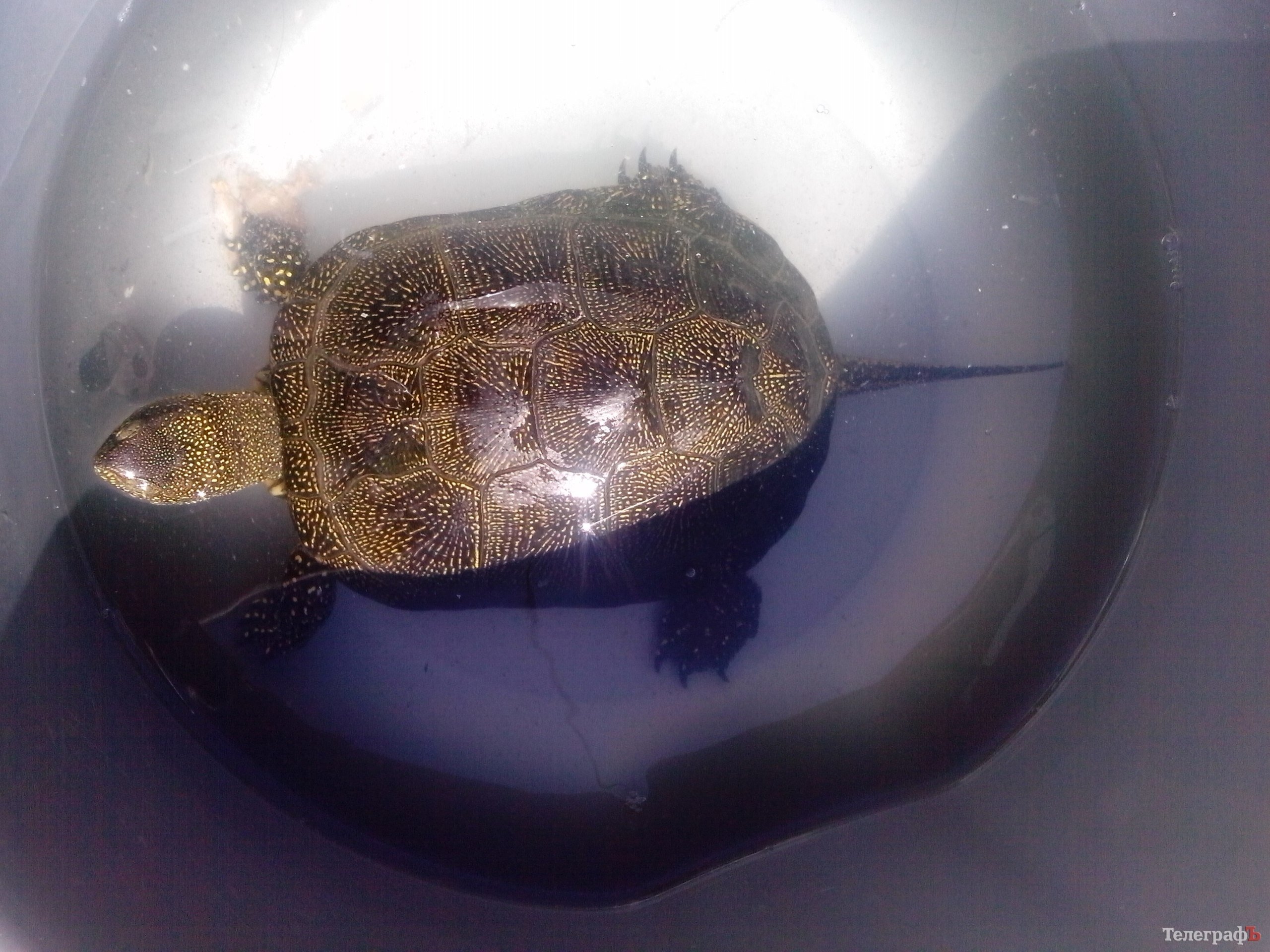 Як вдалося визначити, черепаха належить по виду болотяних, має довжину 22-25 см (зазвичай вони мають розмір 16-18 см), приблизний вік – 7 років, стать – дівчинка. За весь час вимушеної неволі, тварина нічого не їла, і взагалі, невідомо як опинилася далеко від води. (Найближча водойма від місця, де знайшли черепаху – за 4 км.)