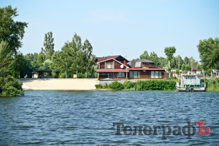 Далі правобережжя залишалося «чистим», а от лівий берег за «Нібулоном» обріс котеджами, мов грибами. Першим «впав у око» котедж із просторими приватними пляжами, фонтаном та пришвартованим катером.
