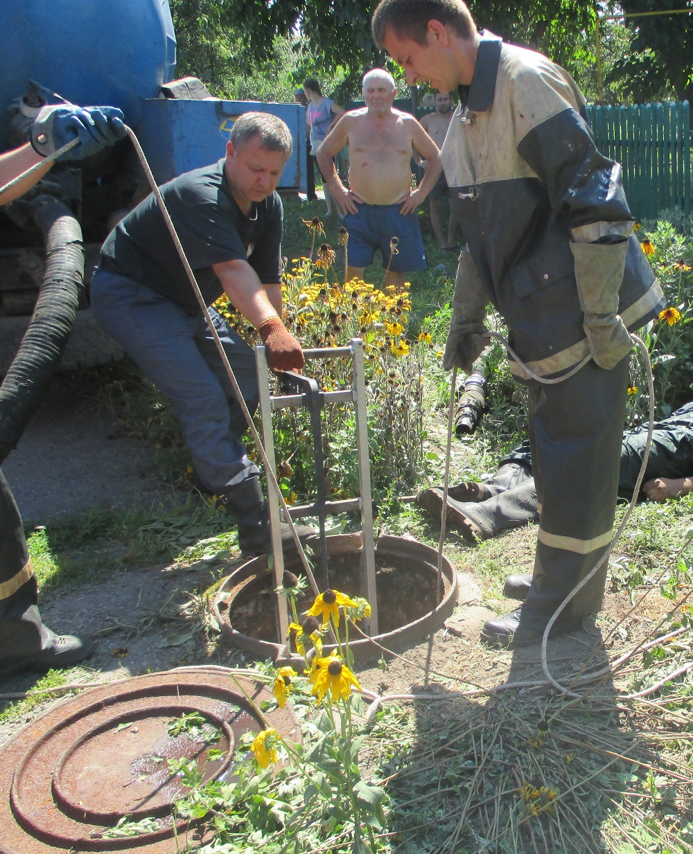 14.08 Спасатели прибыли на место происшествия. Возле канализационного коллектора на улице Октябрьской стоял ассенизационный автомобиль, крышка канализационного коллектора была открыта, а на глубине около 2,5 метров лежали двое мужчин без признаков жизни.
