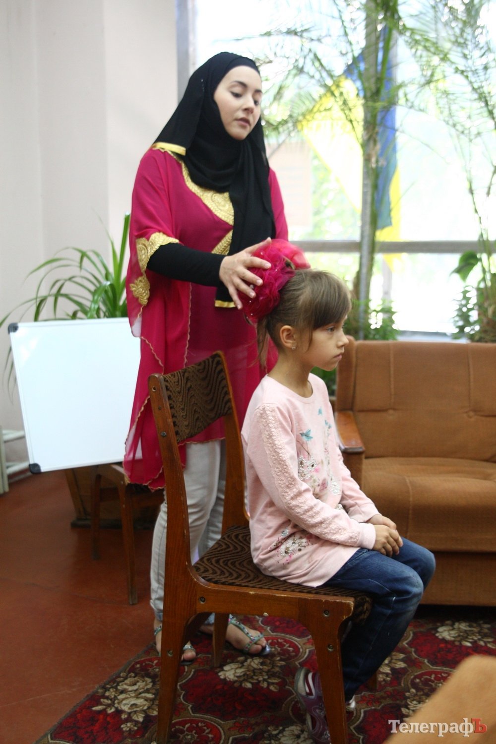 В рамках недели мусульманской культуры в Кременчуге в городской библиотеке им. Максима Горького прошел «День семейного творчества». Представители местной общины рассказали об исламе, о своих традиционных и повседневных нарядах, научили завязывать хиджаб и даже рисовать хной.