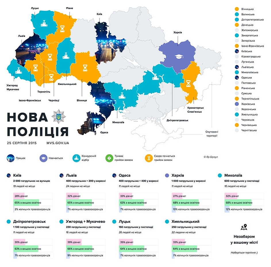 Старт набора в патрульную полицию еще в 20 городах страны запланирован в такой очередности: