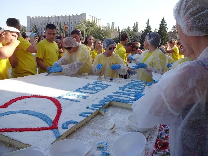 В Кременчуге зафиксировали рекорд Украины. Организаторы акции "Пробег с верой в сердце" изготовили творожную запеканку весом 113 кг. После фиксирования рекорда на площади Победы кременчужане за полчаса съели запеканку.