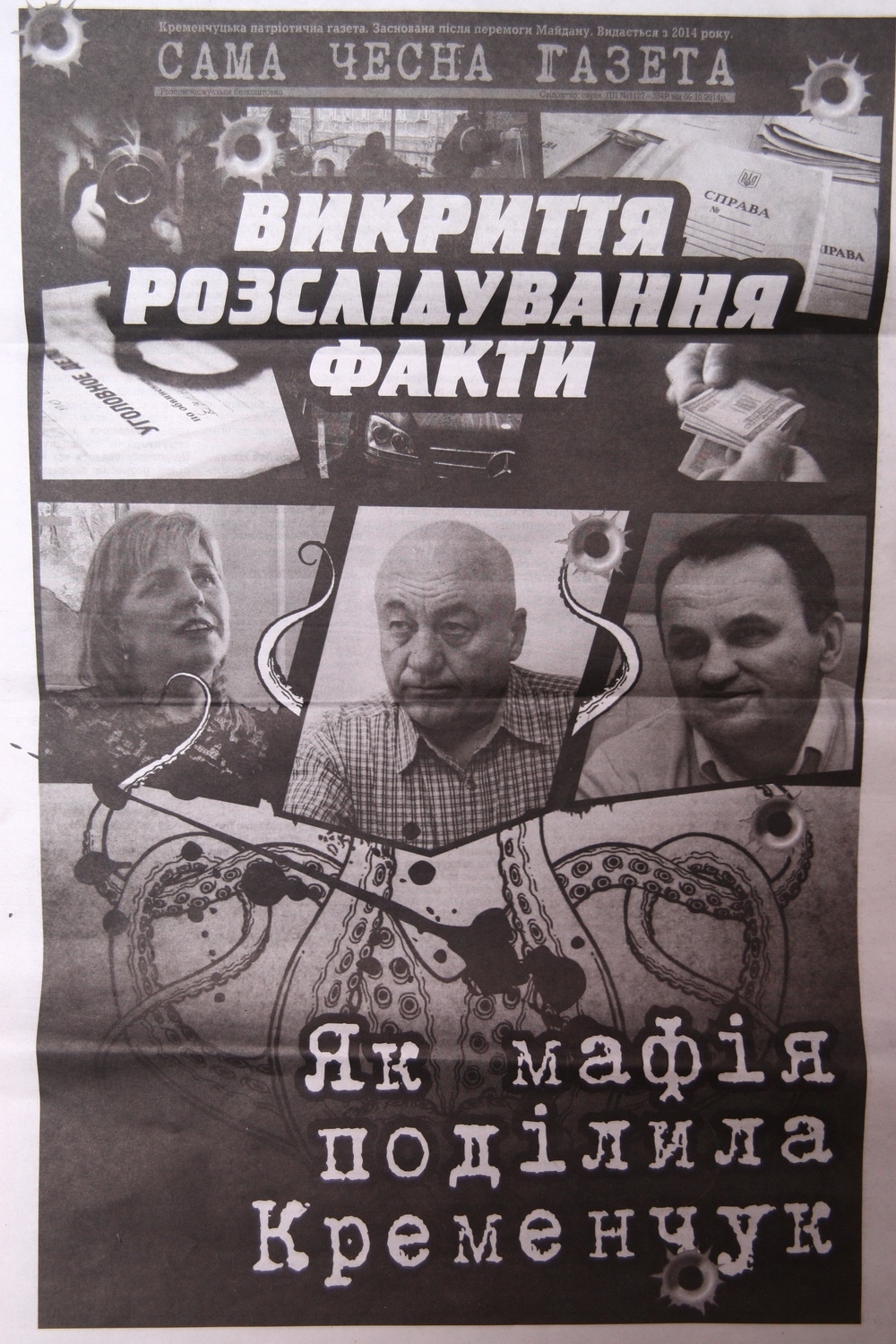 «Сама чесна газета» пішла простим шляхом. Одного з кандидатів на посаду мера Кременчука обізвала «сексотом КДБ» (секретний співробітник Комітету державної безпеки СРСР, ред.), іншого – мафіозі з бокалом, а усіх інших – просто мафіозі. Водночас «Сама чесна газета» не вказала, хто її засновник та видавець, та яка її юридична адреса – мабуть, шифрувалися від мафії.