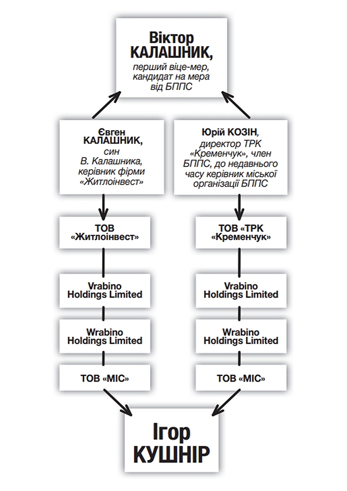 Фірму «Житлоінвест» у Кременчуці завжди пов’язували з Ігорем Кушніром – впливовим бізнесменом, на той час (2007р.) депутатом міськради (тоді соціалістом, до речі). Сьогодні документально довести, що «Житлоінвест» дійсно пов’язаний саме з Кушніром, не так просто. Наразі серед засновників фірми фігурує Врабіно Холдінгз Лімітед (Vrabino Holdings Limited), а серед кінцевих бенефіціарних власників – Wrabino Holdings Limited (різниця в одну букву: W замість V). Це – Кіпр, Панама, Віргінські острови – малодоступні офшори, де власники не розкриваються.