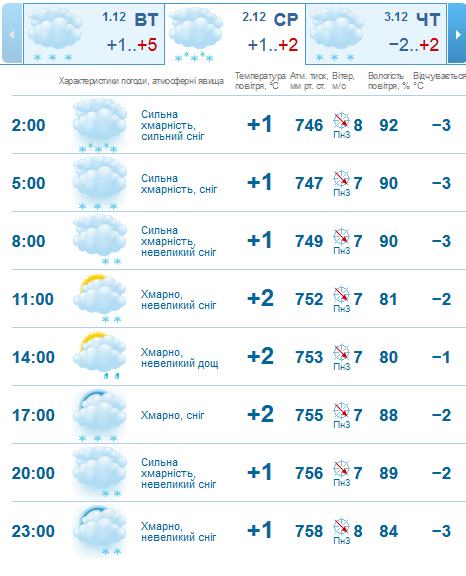В ніч на 3 грудня температура повітря триматиметься позначки +1. Таку ж температуру повітря обіцяють і на 3 грудня.