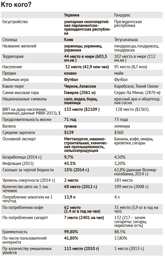 «Не ту страну назвали Гондурасом» – ну кто этого не знает? Название дале-е-екой латиноамериканской страны так дорого сердцу любого украинца, что он припоминает его всякий раз, как хочет поругать правительство, высказаться по поводу уровня инфляции или отправить оппонента в далекое путешествие. Но в последнее время все больше слышна и другая точка зрения: не стоит сравнивать с нами стабильно развивающуюся страну! Особенно на фоне того, что Гондурас таки опередил нас по важному экономическому показателю – называется ВВП на душу населения. Весть об этом моментально облетела интернет, вызвав много восклицаний по типу «Пэрэмога!». Ведь в 2013-м наша страна была 113-й, тогда как Гондурас сидел себе на 136-й позиции.