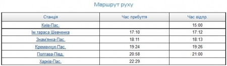 Из Киева поезд отправляется в 15.00, прибывает в Кременчуг в 19.24. Ходить состав "Харьков-Киев" будет в пятницу, воскресенье и среду.