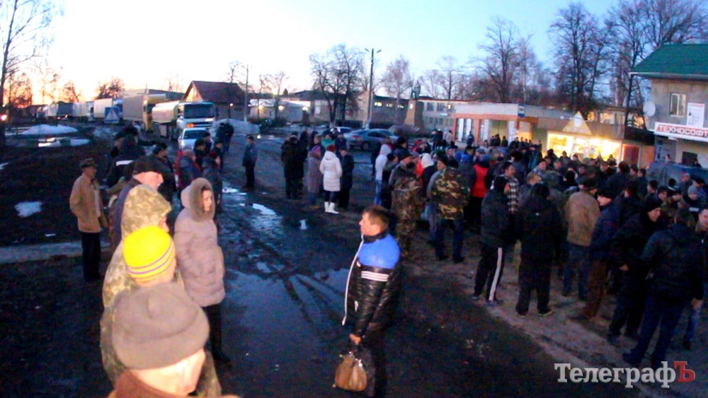 Вечером 17 февраля местные жители блокируют движение транспорта по дороге - не пропускают ни легковые, ни грузовые автомобили - постоянно находятся на пешеходном переходе.
