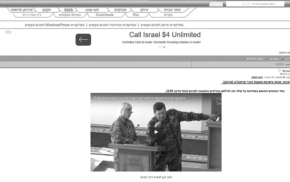 Израильская Википедия больше всего рассказывает о еврейском прошлом и настоящем Кременчуга. Указано, что накануне Второй мировой почти полгорода были евреи – 40 тыс из 90 тыс. В первой десятке ссылка с рассказом о детском празднике в Ор Авнер Хабад и о том, как за 1 день для поддержки программы, которая поможет познавать Тору кременчугской общине, было собрано более $24 тыс. Хитом в первой десятке ссылок стало видео драки на сессии горсовета между активистом Харченко и чиновником Головачем (знай наших!). Кто-то оставил даже пару комментариев. Не уверены, что сможем корректно их перевести, поэтому не публикуем.
