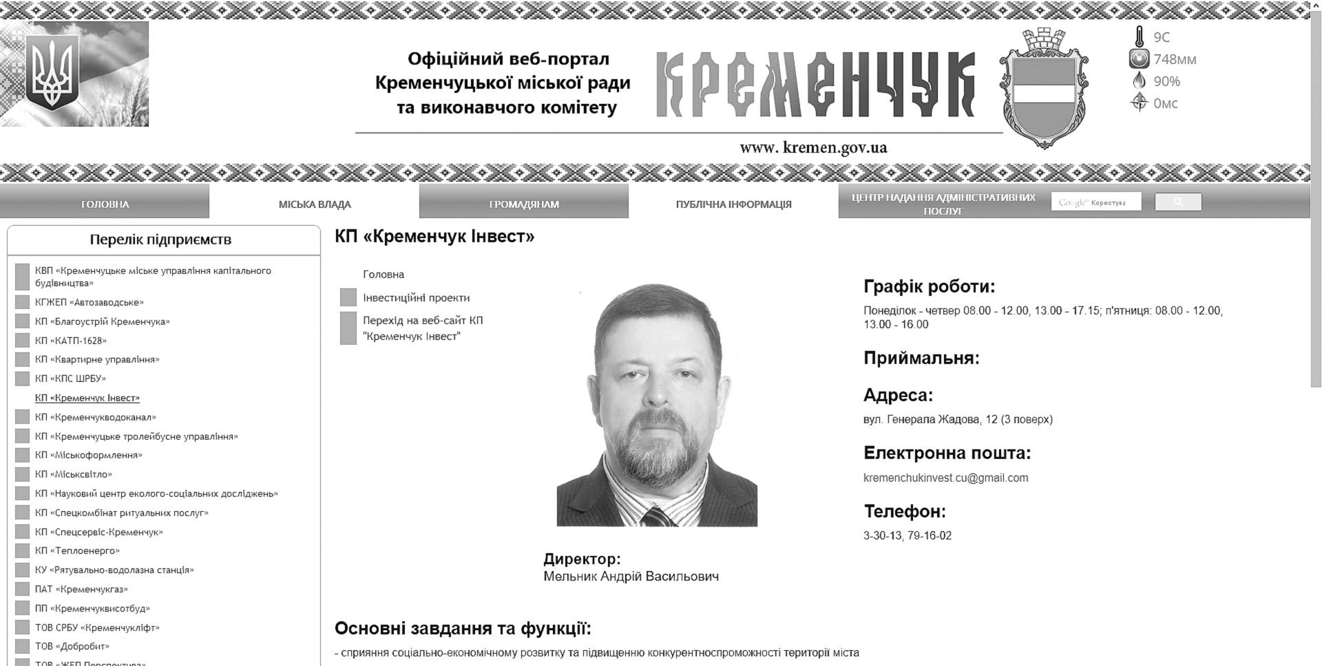 Про индустриальный парк нигде ни слова. Про то, что город заинтересован в привлечении инвестиций – ни намека. Так же, как и про городские проблемы и чаяния ничего особо не найдешь. Где «КременчугИнвест», которому выделяют деньги на повышение инвестиционной привлекательности? Его сайт не работает. На сайте мэрии ни строчки «по-англицки» (Пэремога! Эвропа!): хочешь сотрудничать, ищешь информацию – втыкай в кириллицу или пытайся понять, что напереводил Гугл-транслейт.