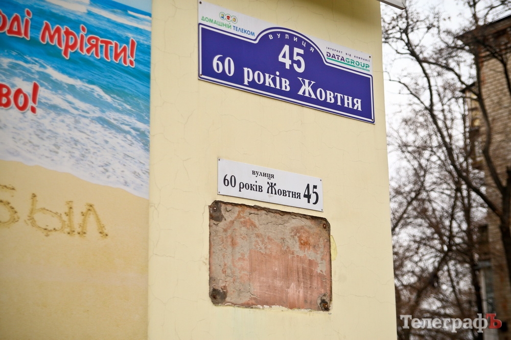 Также на ул. Коцюбинского со здания Кременчугского летного колледжа сняли металлический знак Аэрофлота, который содержит в себе серп с молотом.