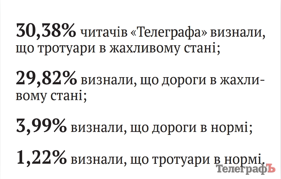 У цей період «ТелеграфЪ» поставив на сайті голосування: «Як вам стан доріг та тротуарів у Кременчуці?».