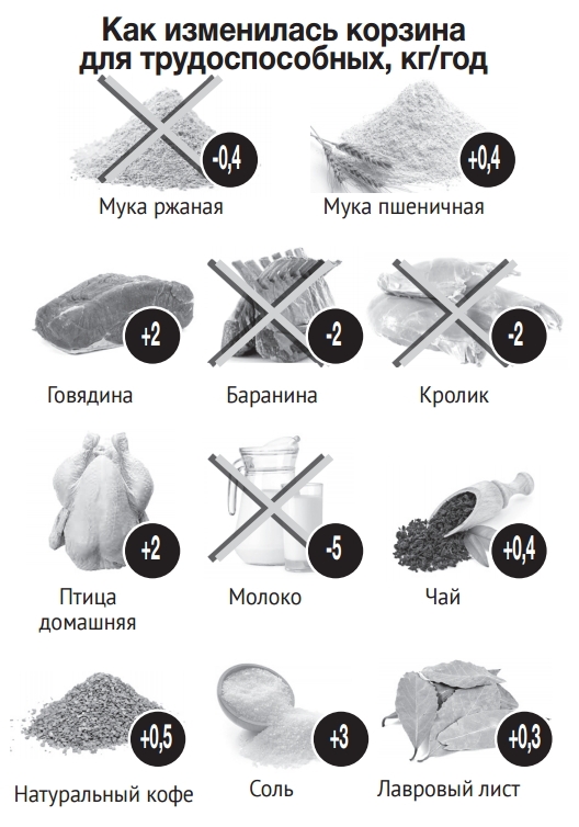 Как изменилась корзина для трудоспособных, кг/год