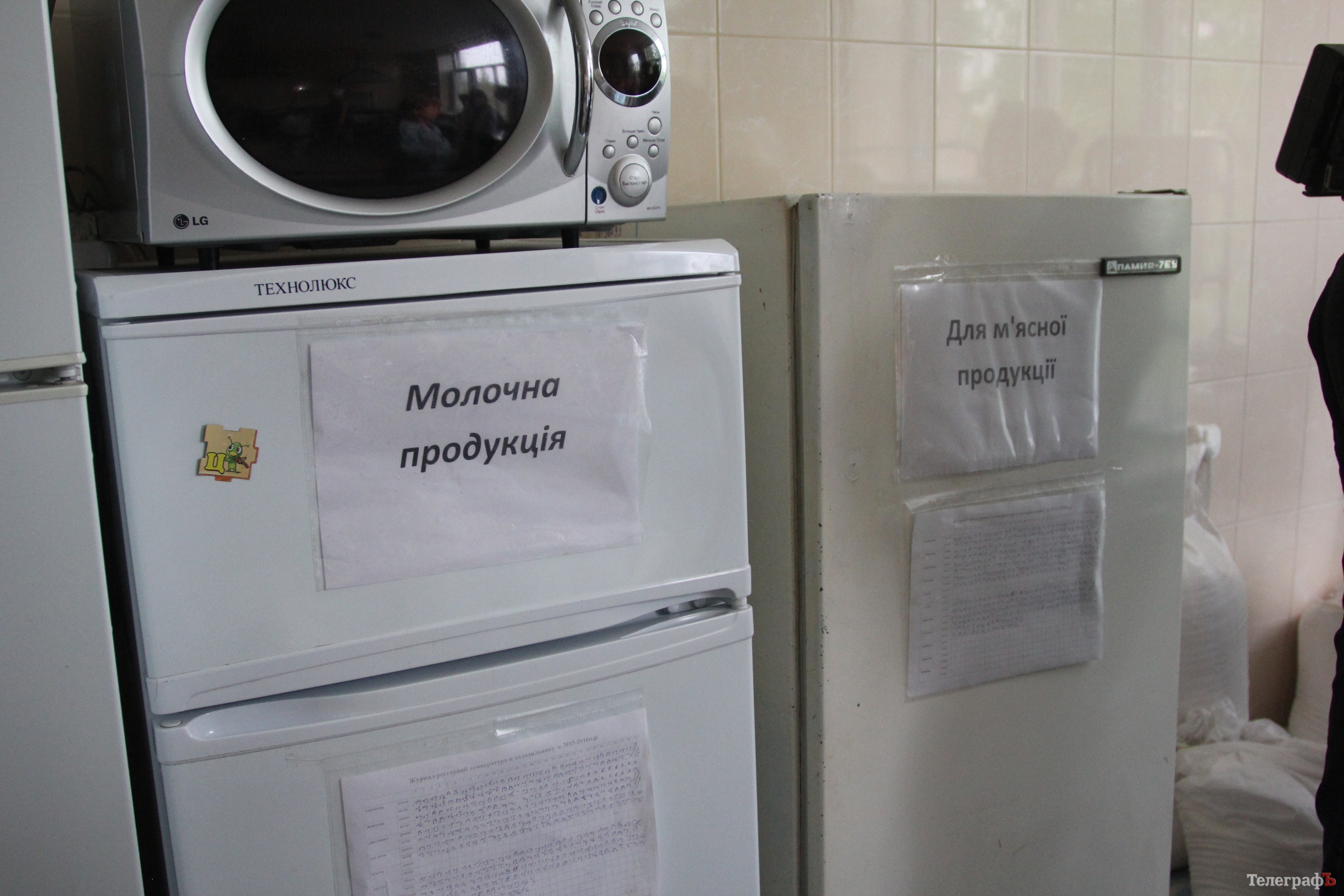 Молочні та м’ясні і рибні продукти зберігаються в окремих холодильниках. Представник Держсанепідслужби зауважила, що всі холодильники у робочому стані, нормативну температуру тримають, втім один із холодильників вже треба міняти за віком і вислугою років.
