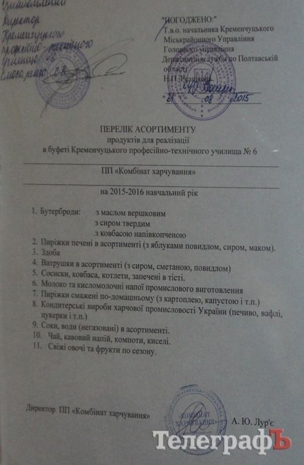 «Телеграф» запитав, як з такими цінами ПП «Комбінат харчування» виграв тендер на харчування сиріт у ПТУ-6? Директор училища відповіла, що останні два роки тендери не проводять, бо сума лоту менша за 200 тисяч гривень (мало дітей сиріт харчується). «Телеграф» запитав, чому для харчування сиріт обрали саме ПП «Комбінат харчування»? Директор відповіла: «Комбінат харчування» виграв останній тендер і ми переуклали з ними договір».