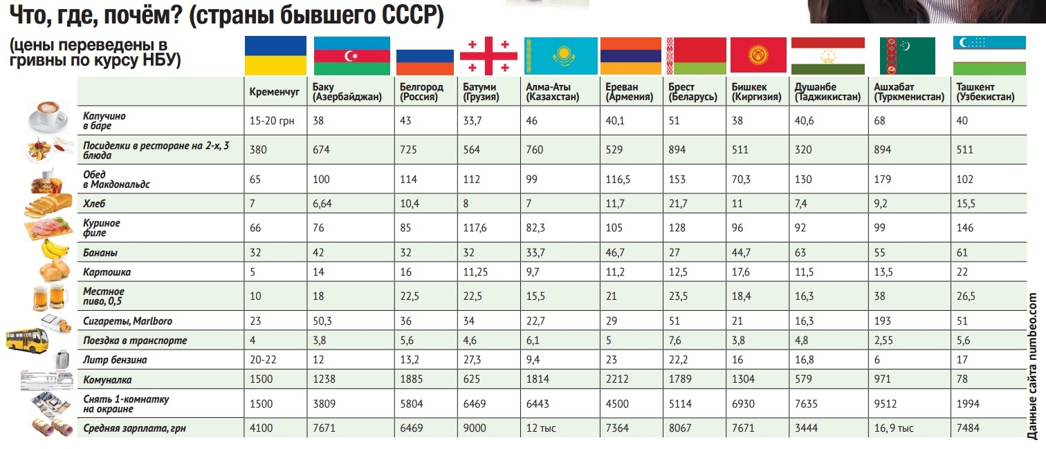 Что, где, почём? (страны бывшего СССР) (цены переведены в гривны по курсу НБУ)