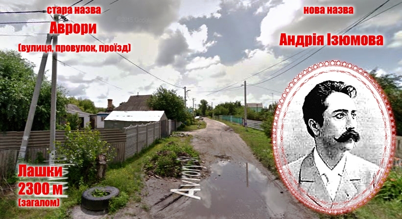 Провулок, проїзд та вулиця Андрія Ізюмова (колишні назви – Аврори)