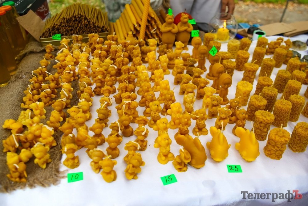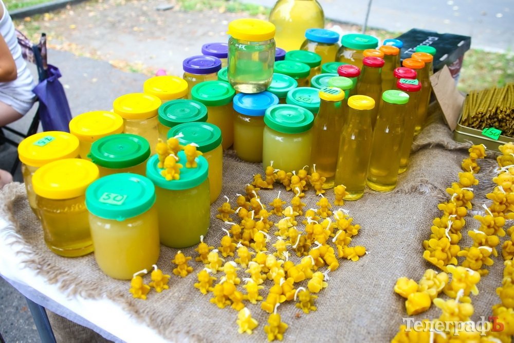 Ну и куда же пчеловод без меда? На праздничной выставке – мед «урожая-2016» с акации. Цена, правда, кусается – 75 грн поллитра. Юрий говорит, что в этом году урожай слабенький из-за дождей и низкой температуры. Есть и прошлогодний – дешевле.