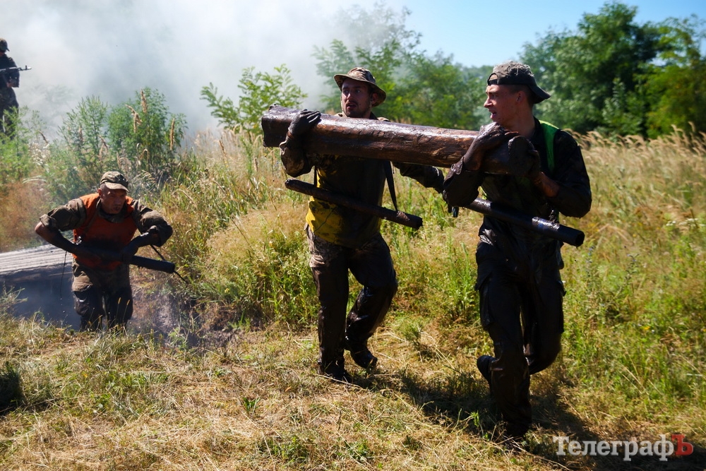 Зрелище потрясающее! У меня в первые же минуты действа заложило уши от автоматных очередей и взрывов под ногами. Такое ощущение, что действительно попала в зону военных действий. Но желания спрятаться и отсидеться в кустах не было. Мне разрешили ходить прямо возле ребят, главное, чтобы невзначай не зашибли. И нужно было держаться подальше от рва с водой – грязные брызги летели во все стороны. Сопровождал вдоль полосы препятствий меня Андрей, иначе я бы потерялась в густом дыму. Для него мероприятие было не в новинку, так что он смеялся над моей бурной реакцией. Андрей только недавно вернулся из зоны АТО, отбор кандидатов в «Альфу» для него, как детский лепет.