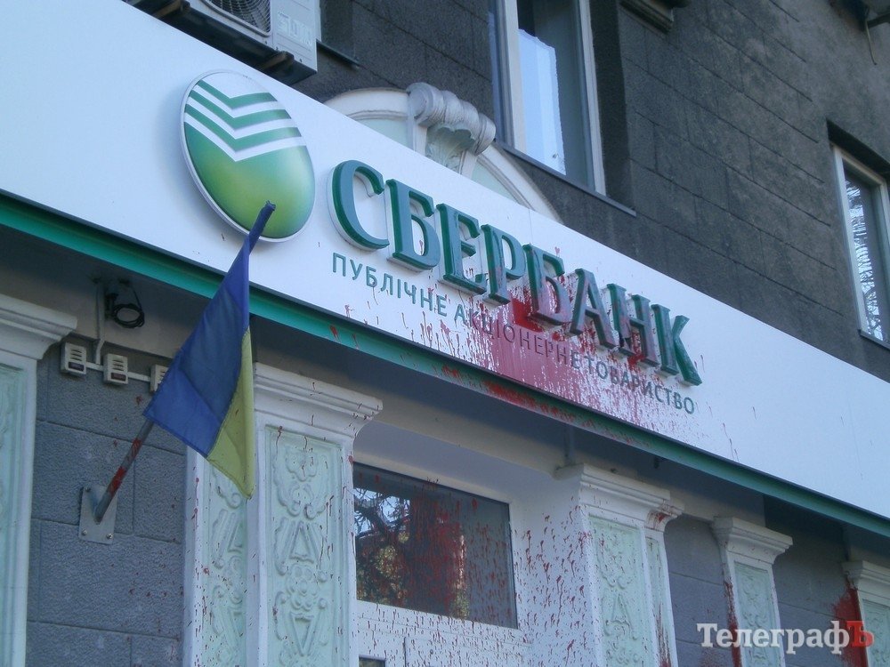 Сьогодні, 1 вересня, невідомі облили червоною фарбою «Сбербанк» на розі вул. Соборної та Небесної Сотні (колишня вул Пролетарська). За словами охоронця банку о 4 ранку невідомі облили банк фарбою та пошкодили вікно. Хто обливав банк фарбою – чоловік не бачив.