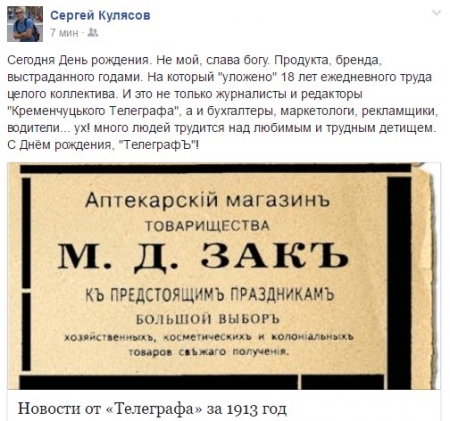 В День рождения издания редакция размещает материалы, которые печатались в "Телеграфе" в 1913 году. У вас есть возможность оценить слог и поискать ошибки, если найдете:)