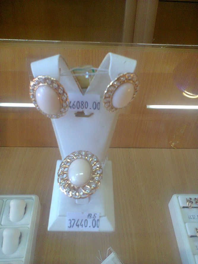 Неброский и очень дорогой – набор из серег и кольца с кораллами. Красотища обойдется в 83,5 тыс грн – 46 тыс за серьги и 37,5 тыс. за кольцо. Это почти 60 минималок.