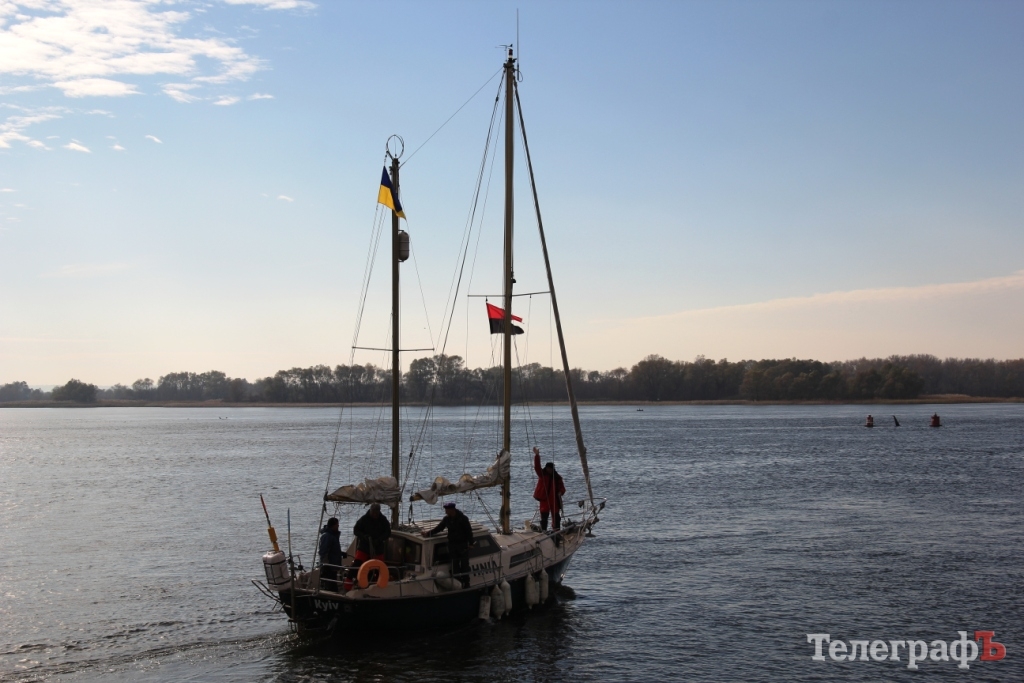 Увлеченные путешественники и очень интересные люди, возвращаясь из своей европейский экспедиции, прошли на яхте через Кременчуг. Их конечный пункт назначения - Киев, откуда “родом” красавица-яхта. Кстати, ради ее 12-метровой мачты пришлось даже поднимать Крюковский мост. Запросили за это ни много ни мало - 8 тысяч гривен. Правда, при содействии мэрии, удалось пройти бесплатно. В Днепре за мост запросили аж 18 тысяч, но удалось пройти вслед за другим судном.