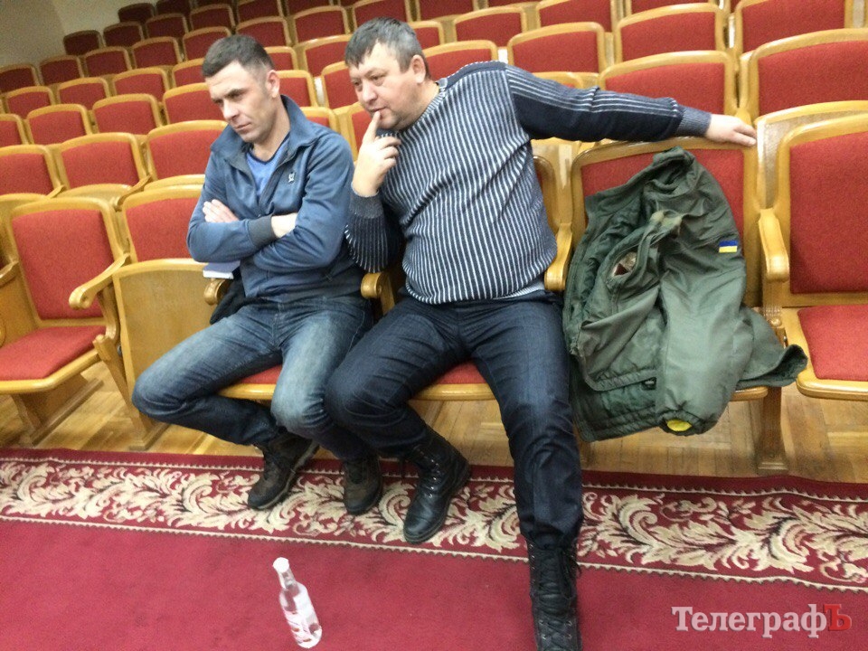 Леонид Харченко пришел с бутылкой водки и демонстративно поставили ее на пол. Сергей Полюхович (на фото слева) водку не приносил, просто сел рядом и попал в кадр:)