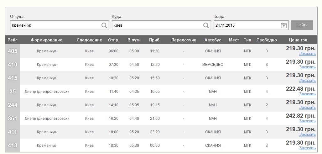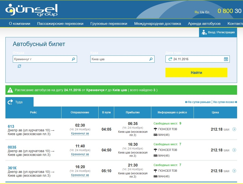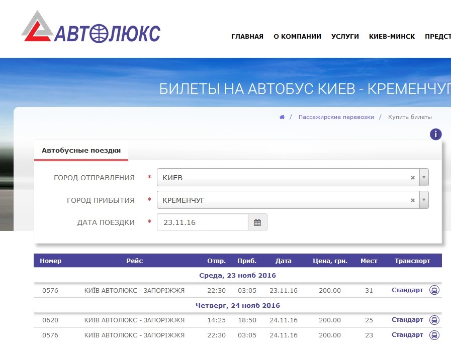 К примеру, поездка с кременчугского автовокзала в Киев на большом автобусе Гюнсел обойдется Вам на 12 грн дороже, а Автолюкс довезёт за 200.