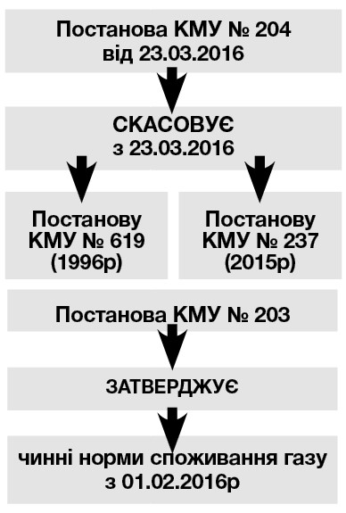 Дивіться, що виходить. Виявляється, в природі існує Постанова № 204, підписана колишнім прем’єром Яценюком 23 березня 2016-го року. Цією Постановою з 23 березня визнаються нечинними Постанови про норми споживання газу № 237 та № 619 (та, що нас цікавить). Начебто виходить, що норми споживання, передбачені Постановою № 619, мали діяти аж до кінця березня 2016-го? Та ні, не виходить, бо Постановою № 203, підписаною Яценюком 23 березня та переписаною Гройсманом 27 квітня, нові норми споживання затверджуються з 1-го лютого 2016-го – тобто, за два місяці до визнання нечинною Постанови № 619. То коли ж насправді Постанова № 619 втратила чинність? Хтозна. Це український уряд і українське судочинство, тож результат може вийти дуже несподіваний.