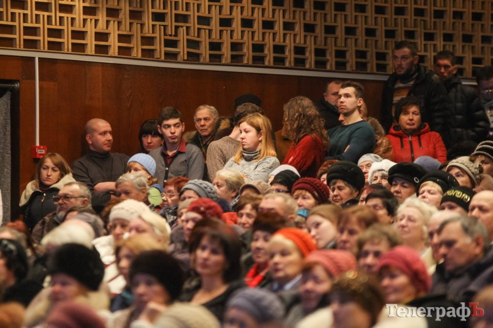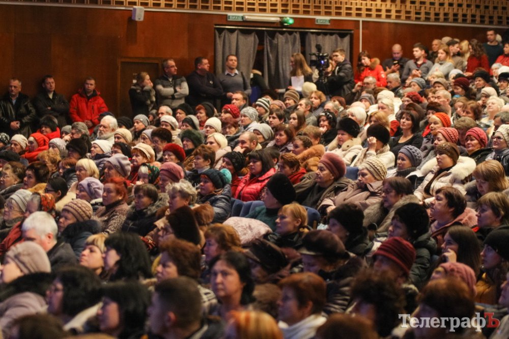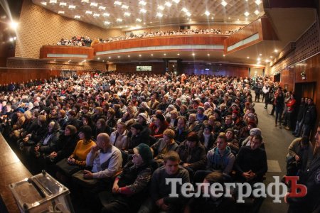 Встреча прошла в ГДК, где собрался полный зал людей. Многие стояли в проходе.