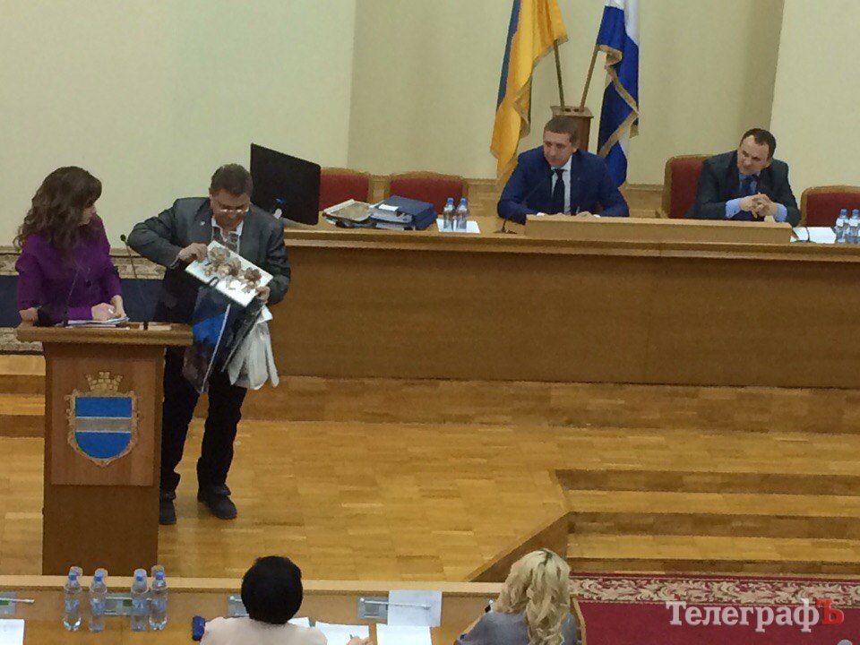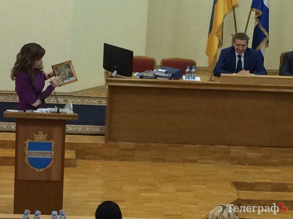 Также фото Пиддубная повесила на трибуну, где сидит мэр. Депутат Виталий Таценюк фото сорвал.