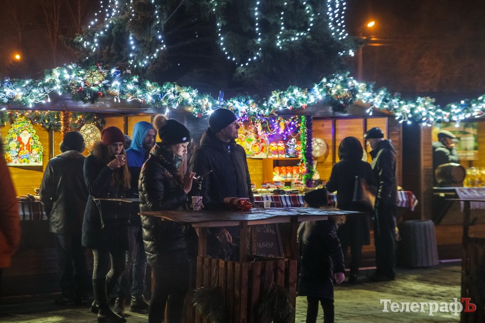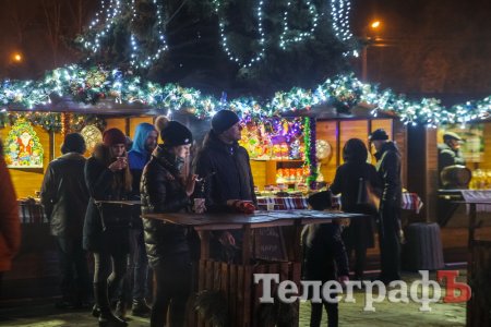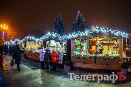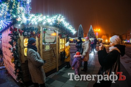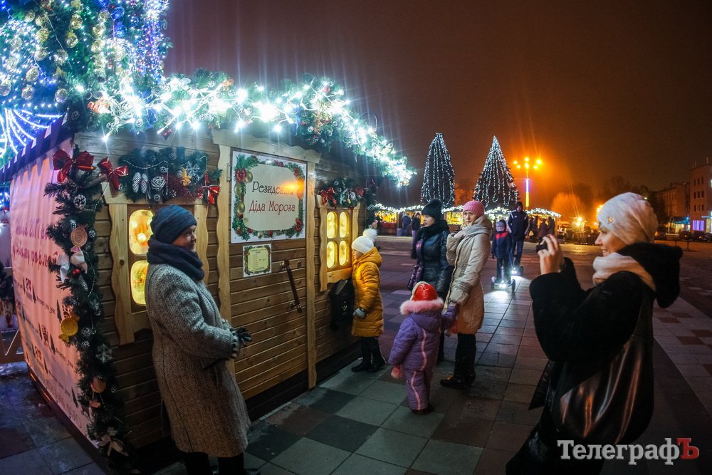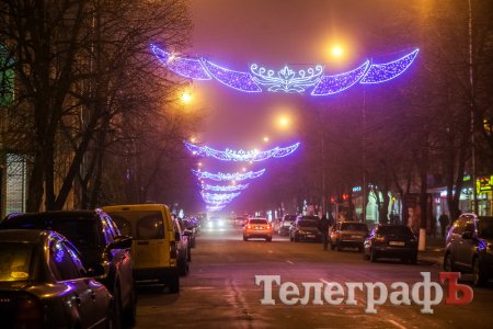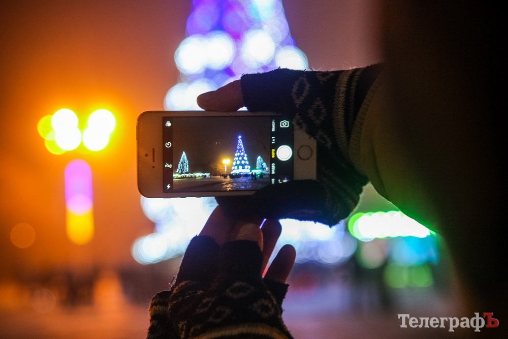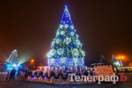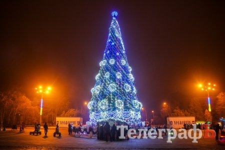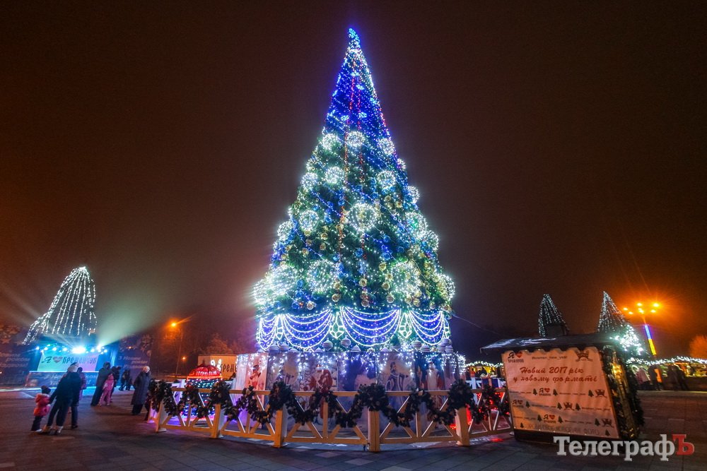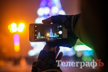 Фотограф "Телеграфа" запечатлел светящуюся огнями новогоднюю красавицу, ну и немного прогуливающихся по площади Победы кременчужан:)