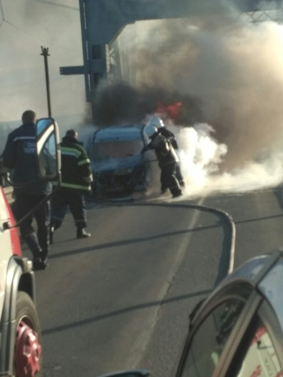 Несмотря на то, что пожарные приехали за 3 минуты, машина сгорела почти полностью.