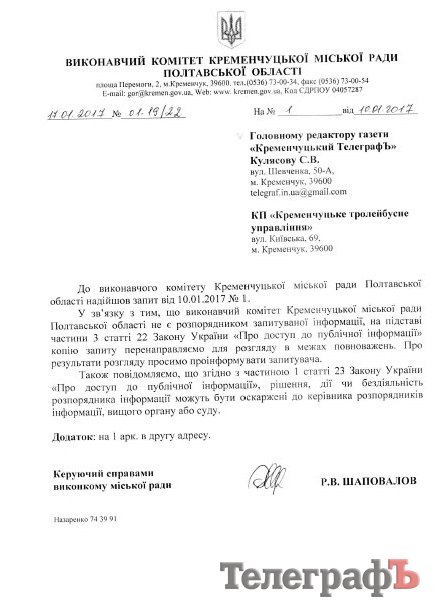 Отже, «Телеграф» звернувся з інформаційним запитом на ім’я міського голови Віталія Малецького. Ми чемно попросили надати нам копію угоди з ЄБРР.
