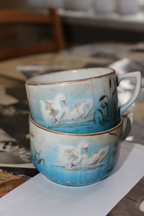 -Ці чашки з лебедями подарував у день весілля мій дідусь бабусі Ані. Під час війни будинок згорів, і ці чашки обгоріли, але вижили, - розповідає Ангеліна Прихожа.