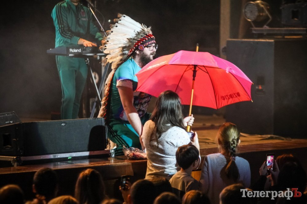 Найбільше пощастило на концерті малечі – бородатий дядько позвав всіх дітлахів на сцену, танцював з ними, водив «паровозик». Навіть конкурс провів, хто голосніше співає: він із дітьми, чи дорослі у залі.