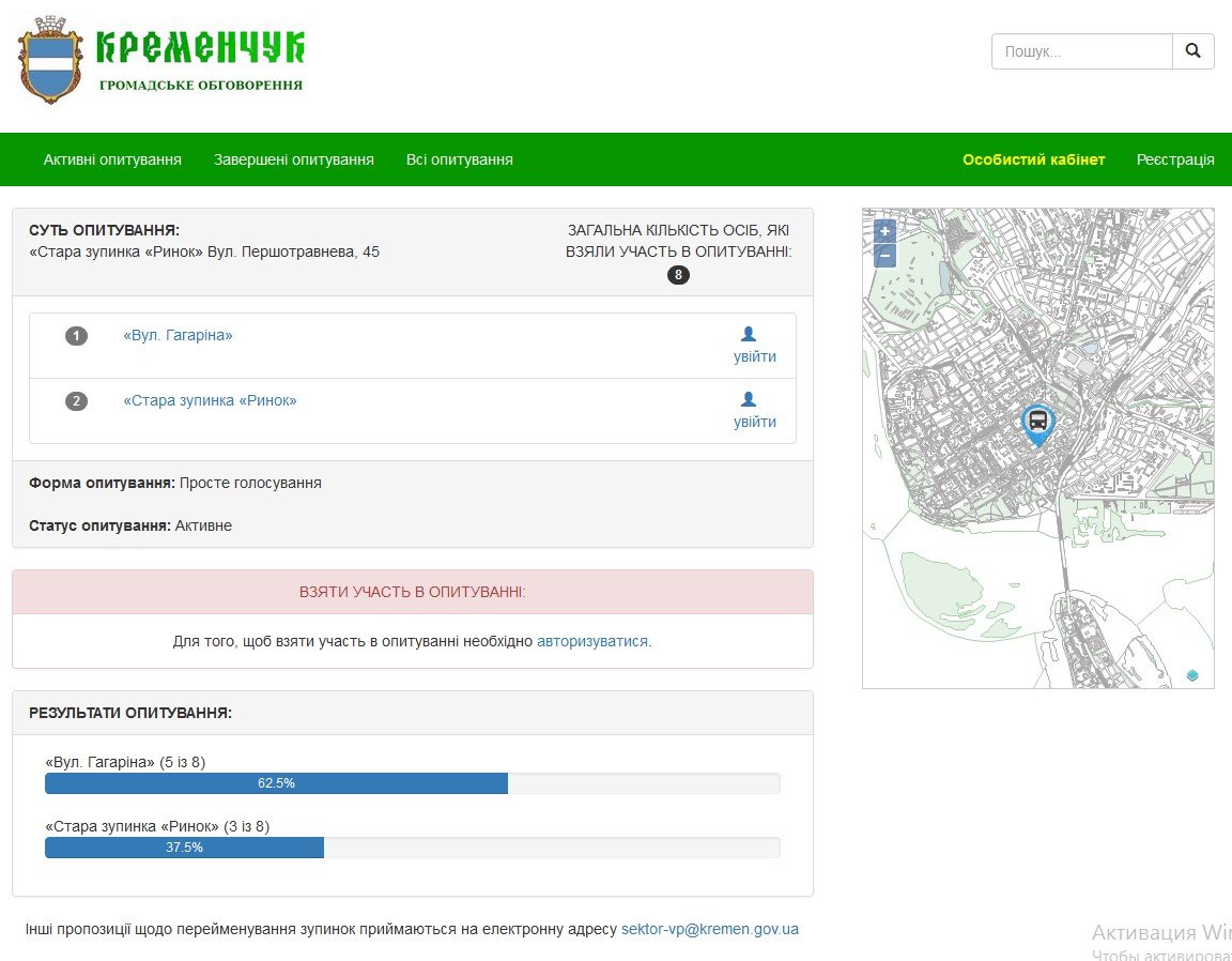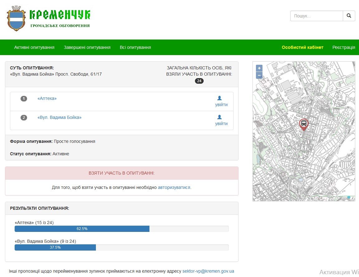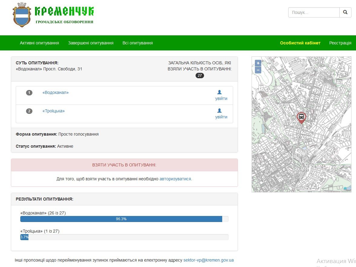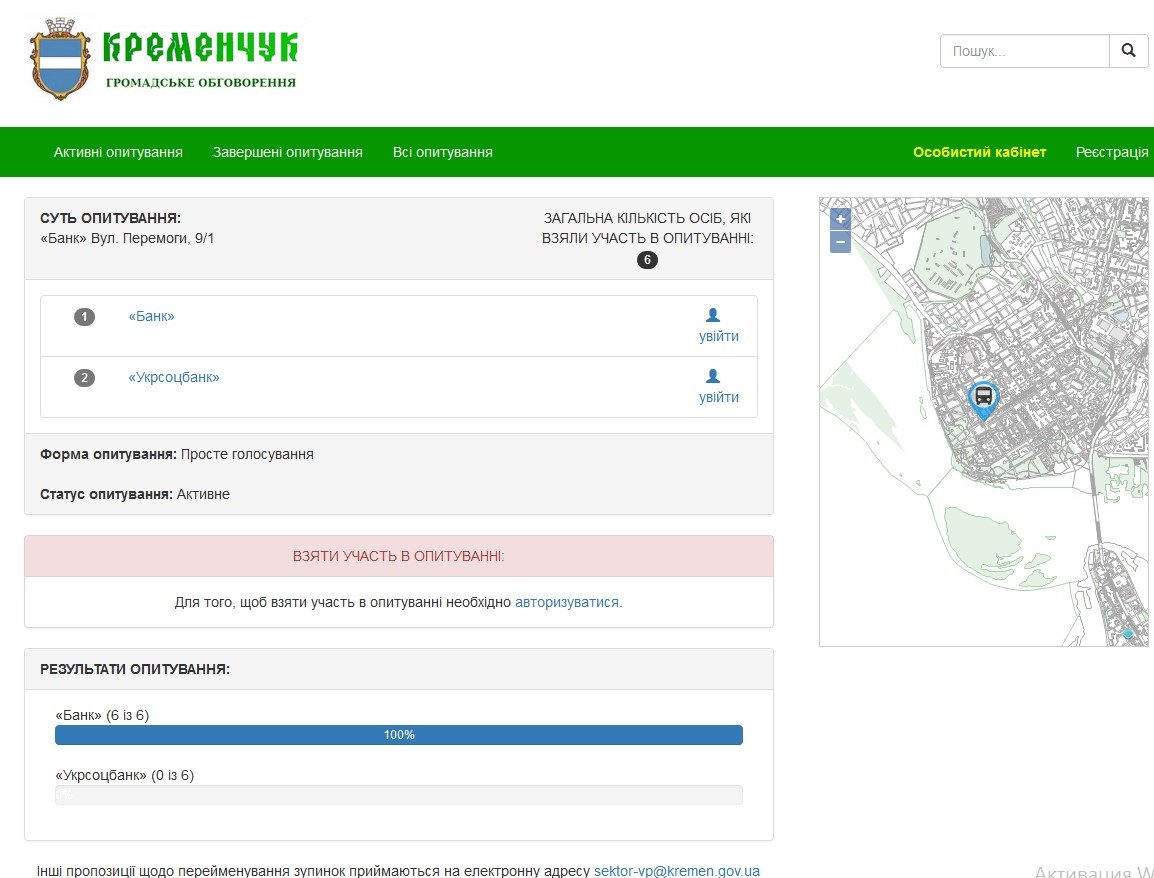 Інтернет-голосування з перейменування зупинок громадського транспорту, що стартувало 2 тижні тому, 13 січня, кременчужани сприйняли без ентузіазму. Зовсім. Уже минула половина «місячника перейменування», а проголосував усього 1 041 кременчужанин.