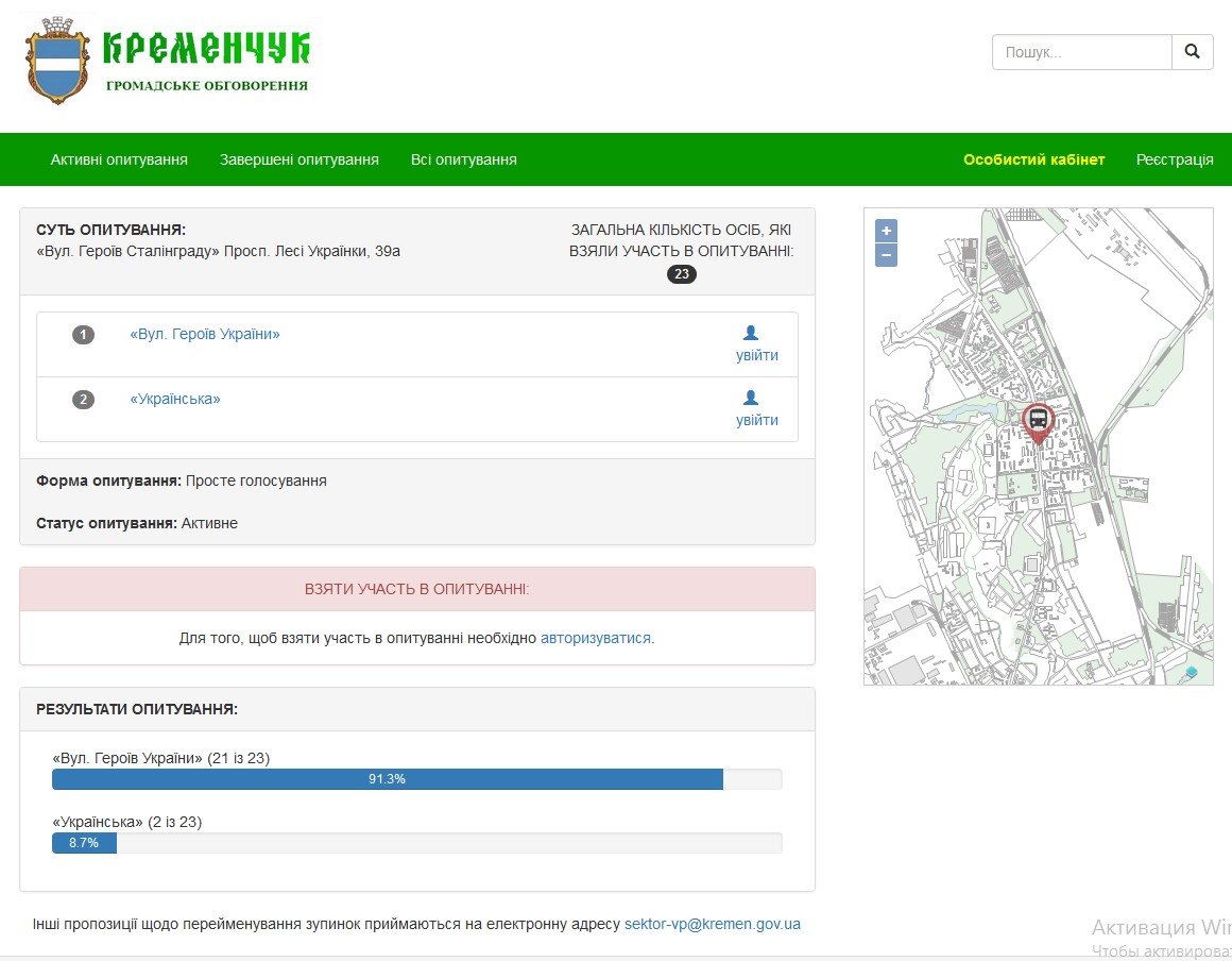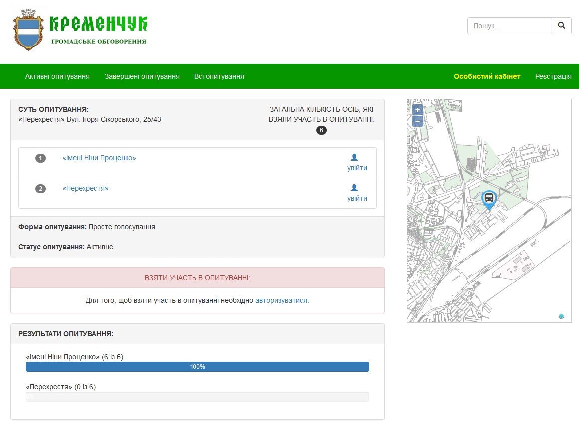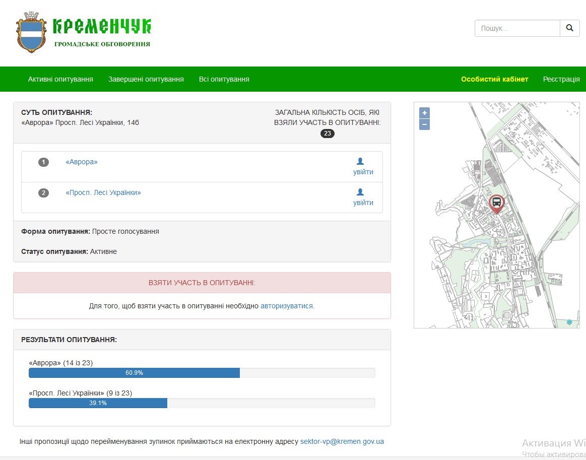 Інтернет-голосування з перейменування зупинок громадського транспорту, що стартувало 2 тижні тому, 13 січня, кременчужани сприйняли без ентузіазму. Зовсім. Уже минула половина «місячника перейменування», а проголосував усього 1 041 кременчужанин.