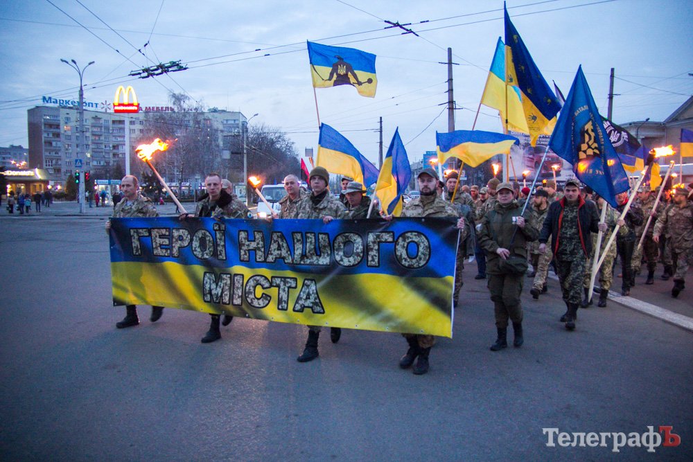 В Кременчуге День Добровольца 14 марта отметили масштабным факельным шествием. Более тысячи горожан вышли на улицы (и практически все с факелами).