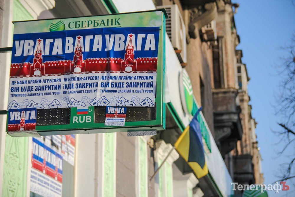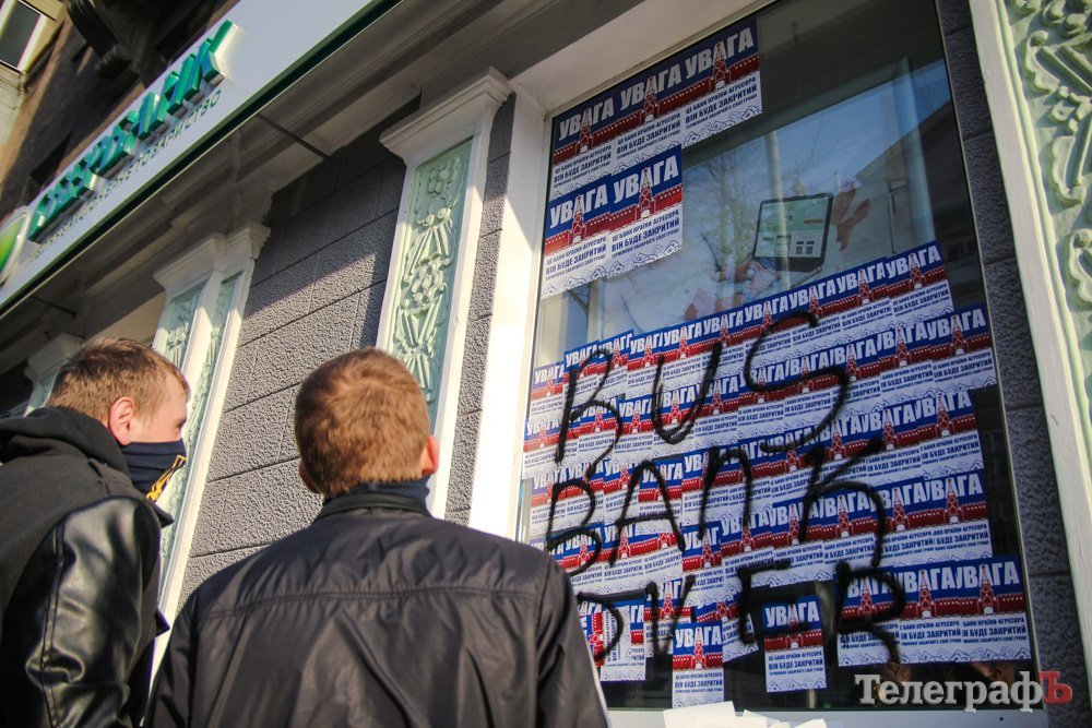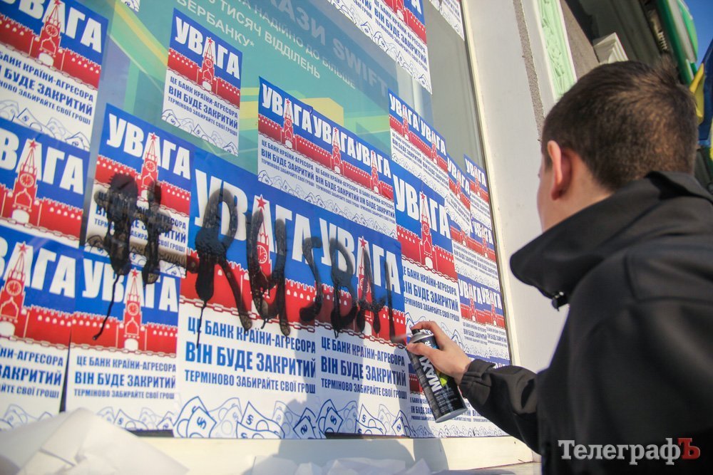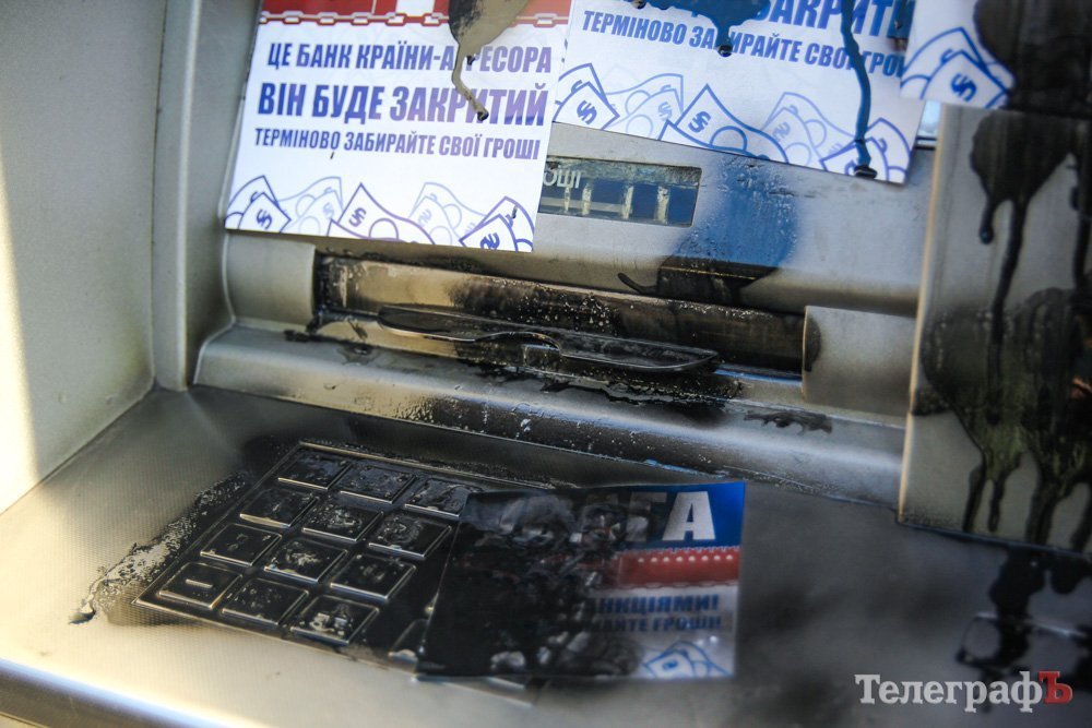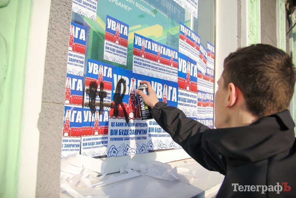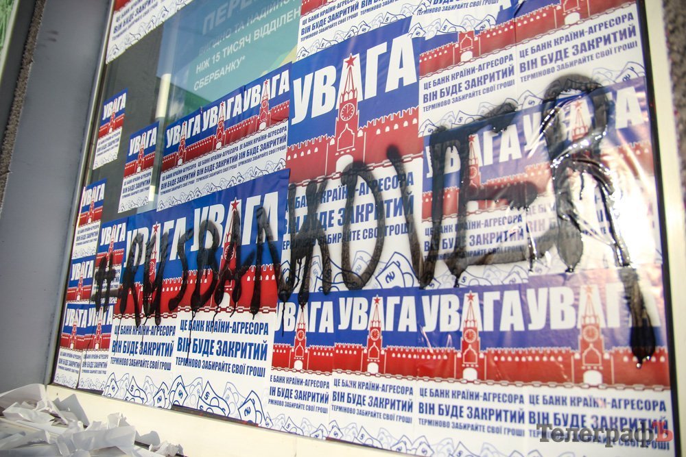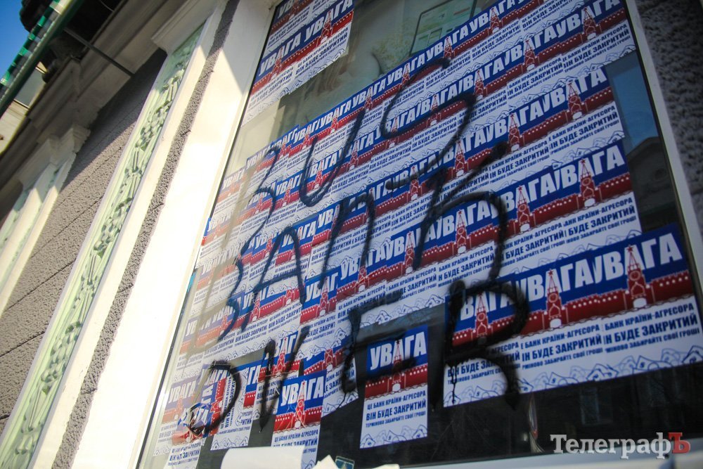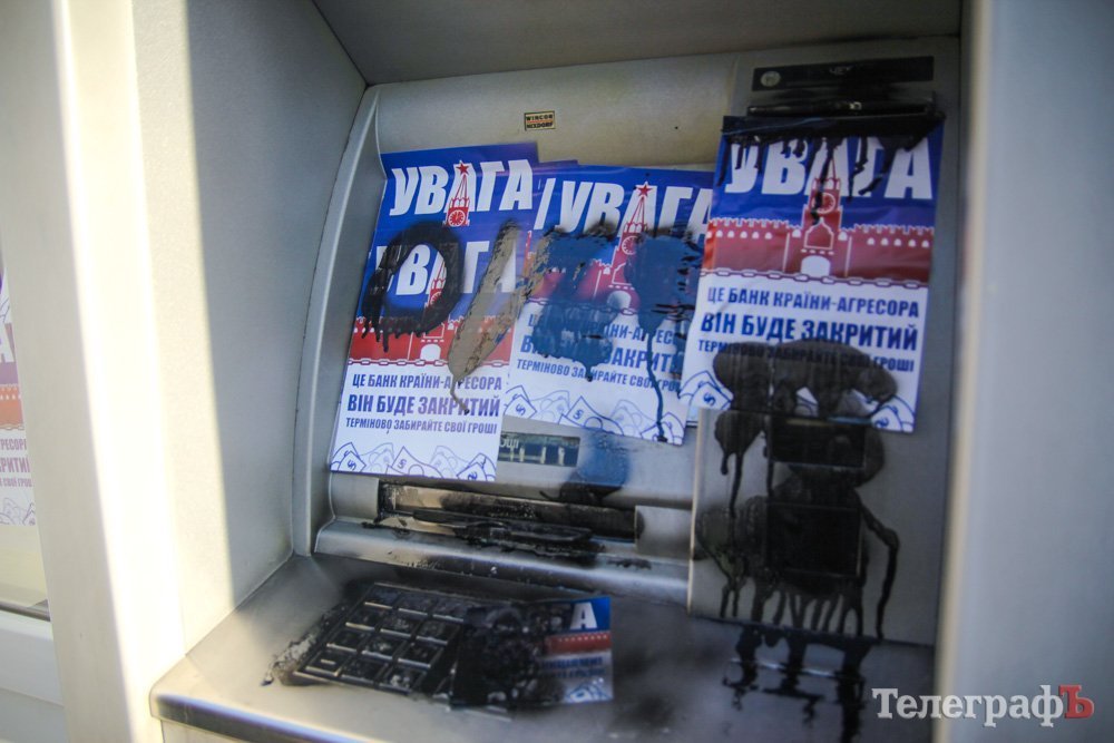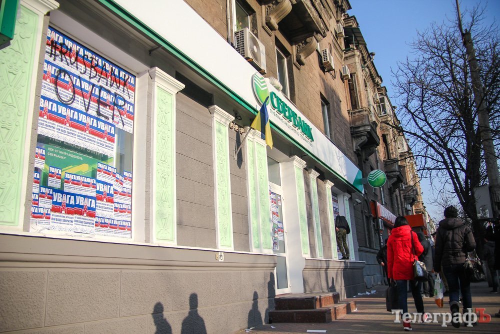 Напомним, что ранее Сбербанк (экс-Сбербанк России) в Кременчуге забрасывали камнями, обливали краской.
