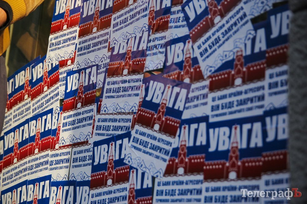 В листовках идет речь о том, чтоб это банк страны-агрессора, и он будет закрыт. Поэтому все срочно должны забрать из него свои деньги.